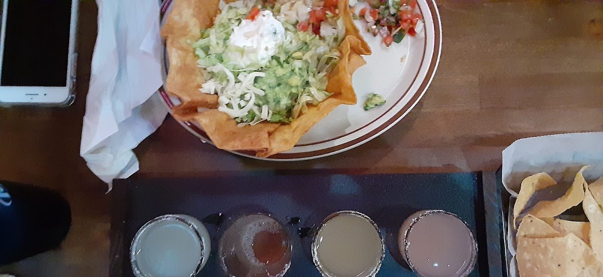 Wonderful food, great ambiance, splendid service! We had a delicious meal of a taco salad, seafood enchiladas, hamburger w/ fries & a lovely meat-rice-veggie mix that my son and nephew devoured! And the Moonshine Floght was fabulous!! Blackberry was my favorite! Can't wait to go & try more of these delectable treats!! I highly recommend a visit here!!